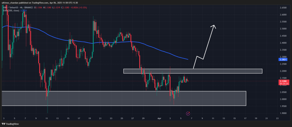 على الإطار الزمني الأصغر، شكلت XRP نمط رأس وكتفين مقلوب صاعد، والسعر على وشك الانفجار. استنادًا إلى زخم السعر الأخير، إذا انقطعت XRP عن النمط وأغلقت شمعة لمدة أربع ساعات فوق مستوى 2.22 دولار، فهناك احتمال قوي أنها يمكن أن ترتفع بنسبة 16% لتصل إلى مستوى 2.60 دولار في الأيام القادمة.