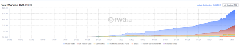أصبح الائتمان الخاص هو نوع الأصول الأكثر شيوعًا في سوق الأصول الحقيقية (RWA) ، حيث بلغ إجمالي حجمه 13.5 مليار دولار ، مما يمثل حوالي 57.7%.