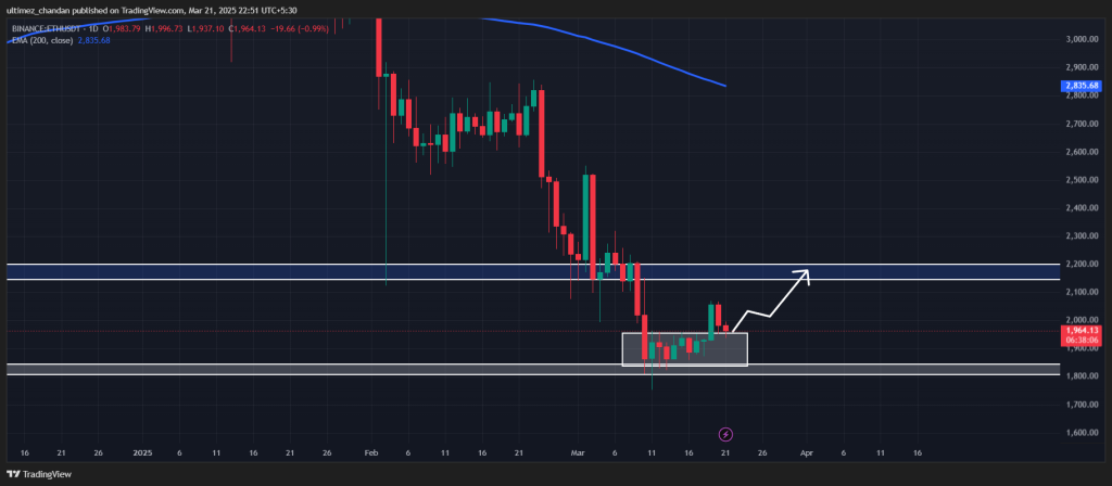 استنادًا إلى حركة السعر الأخيرة والأنماط التاريخية، إذا استمر الإيثير فوق مستوى 1,950 دولارًا، فهناك احتمال قوي أن يرتفع بنسبة 12% ليصل إلى 2,200 دولار في الأيام القادمة.