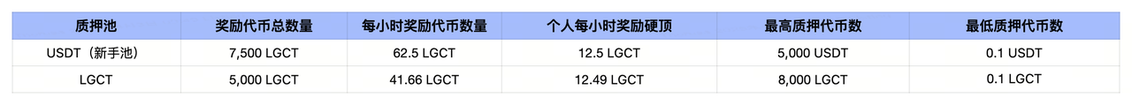 متطلبات المشاركة في مسبح التكديس المخصص للمستخدمين الجدد: يُسمح فقط للمستخدمين الجدد الذين تم تسجيلهم بعد 03 أبريل 2025 الساعة 08:00 (UTC+8) بالمشاركة. الأسئلة الشائعة حول Launchpoolكيفية المشاركة: قم بتسجيل الدخول إلى حساب Gate.io الخاص بك، وأكمل التحقق من الهوية → انتقل إلى Launchpool → احتفظ بما لا يقل عن 0.1 LGCT/ 0.1 USDT → انقر على “التكديس”.