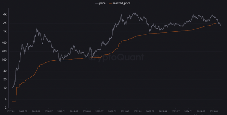 Los datos muestran que el precio de ETH ha caído por debajo del nivel de precio razonable: un indicador on-chain utilizado para recalcular el valor de mercado basado en el último precio al que se movió cada moneda en la blockchain.