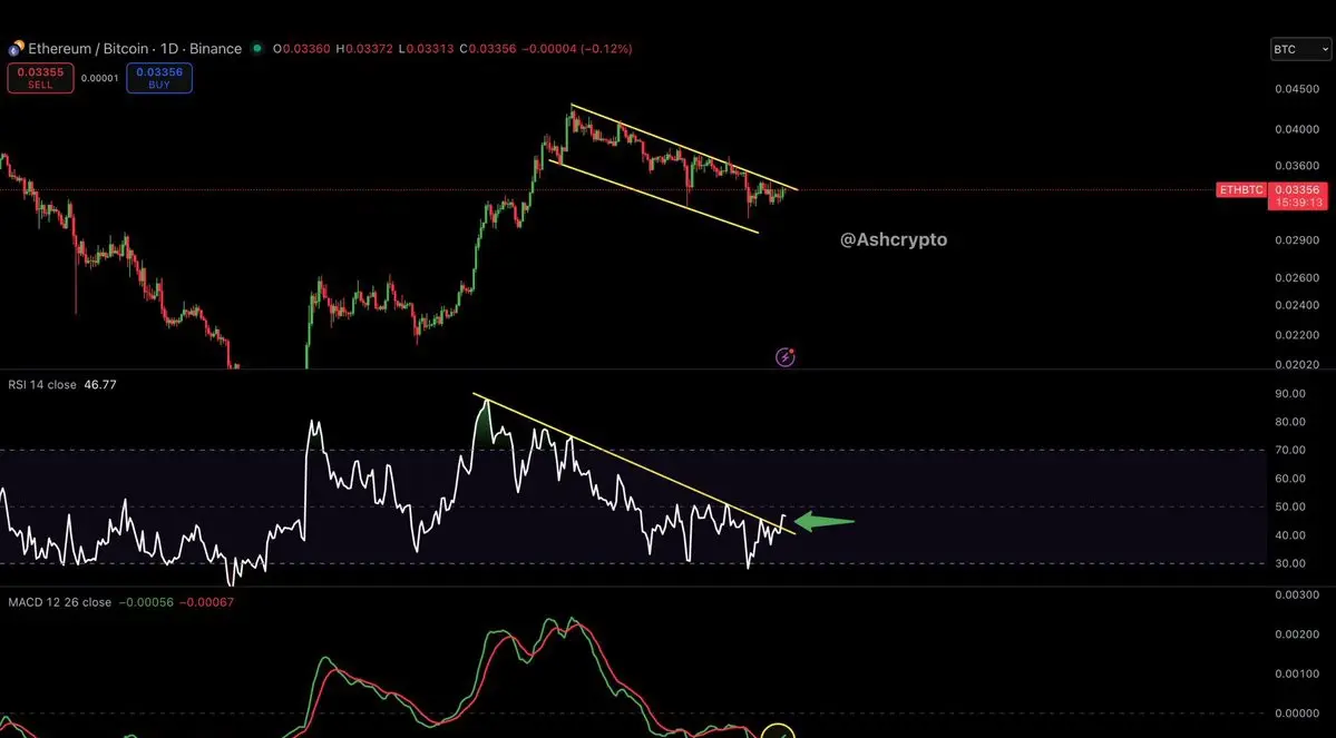 ETH/BTC sort du schéma de tendance baissière