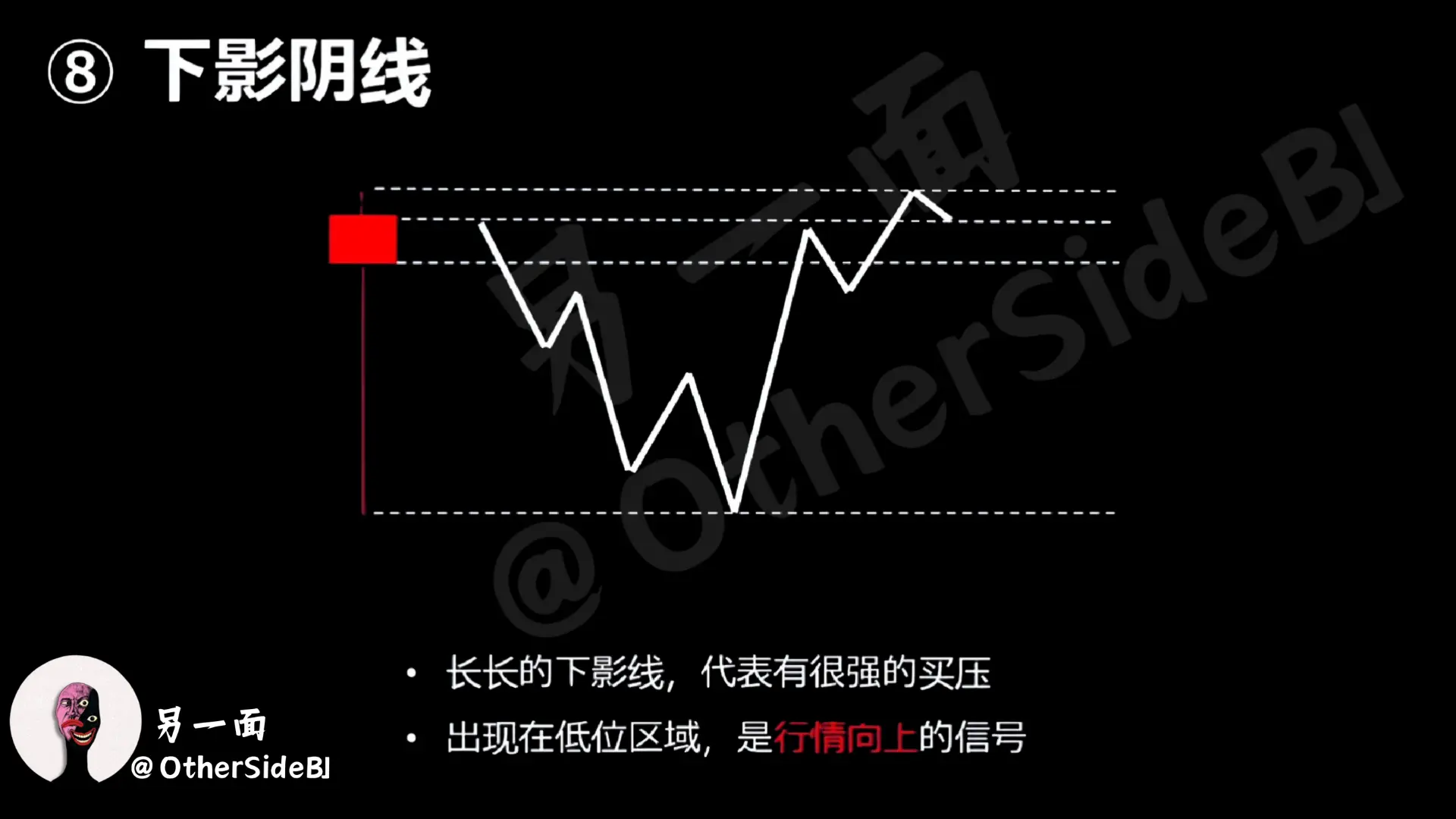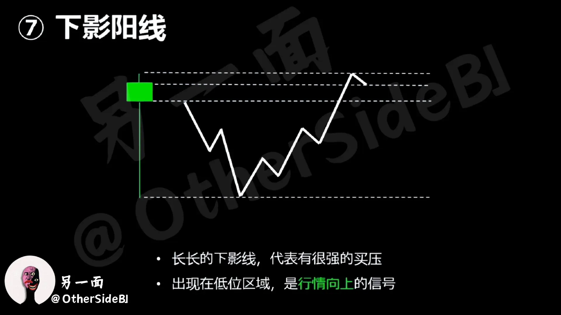 C’est une ligne sombre avec une longue ombre inférieure. Sa signification est en fait similaire, bien que la clôture soit baissée, mais cela signifie que l’achat en dessous reste très fort, et cela peut aussi être utilisé comme un signe que le marché est sur le point de commencer à se retourner à la hausse.