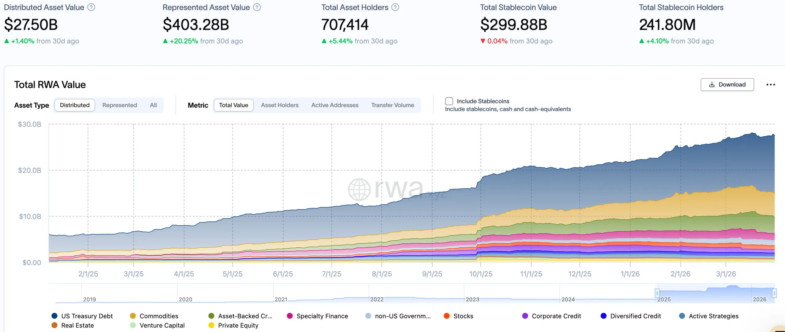 La valeur totale des RWA a atteint 27,5 Md$ :