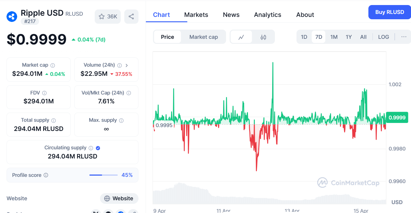 Data yang disediakan oleh CoinMarketCap menunjukkan bahwa volume perdagangan RLUSD telah menurun 37,55% dalam 24 jam terakhir, berada di sekitar $22,51 juta pada saat berita ini ditulis.