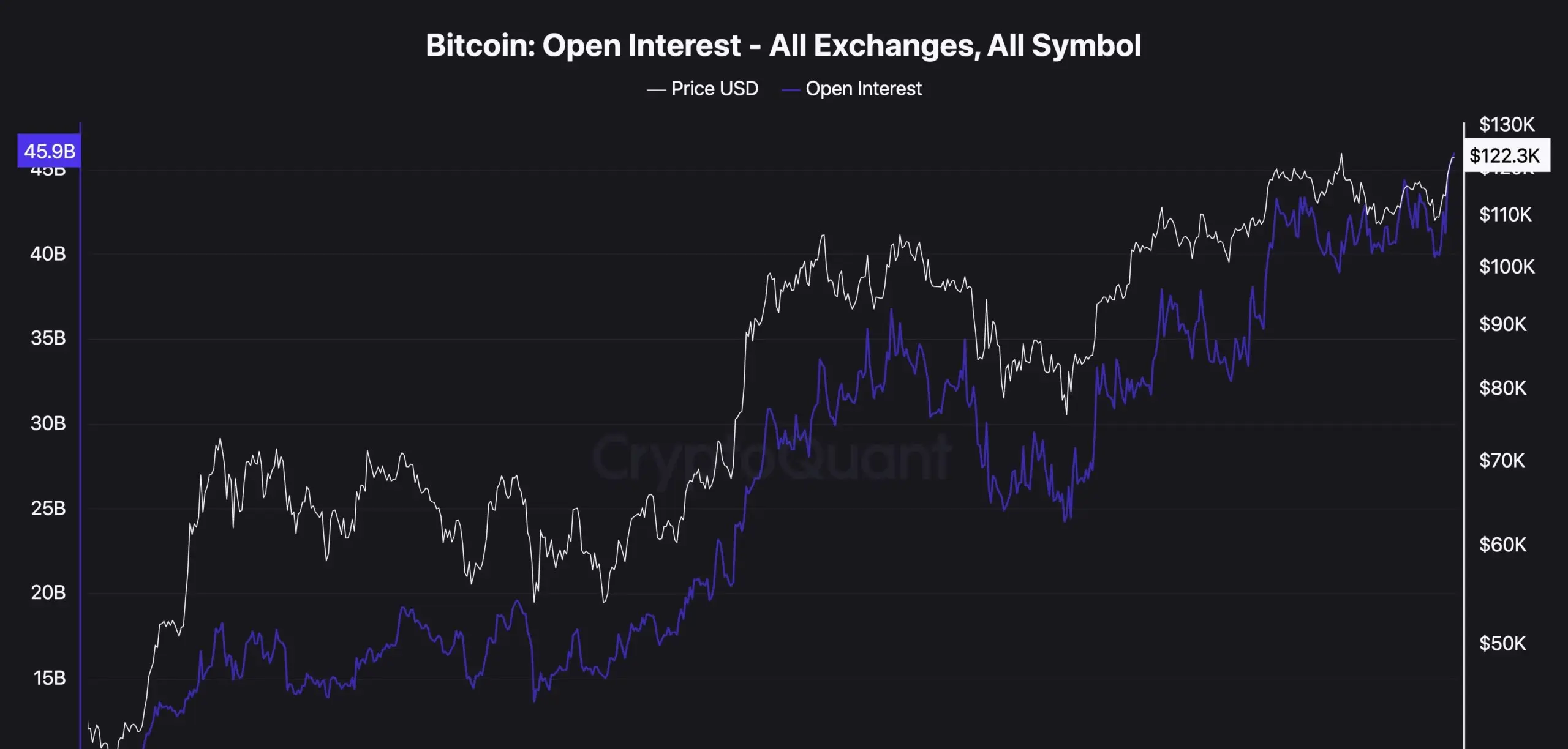 Minat terbuka Bitcoin di platform perdagangan tertentu telah mencapai rekor baru, melampaui puncak Agustus sebesar $14.306B. Lonjakan ini bertepatan dengan reli terbaru, karena BTC telah naik dari $108K hingga $124K, sementara minat terbuka telah berkembang dari $11.5B menjadi $14.3B hanya dalam beberapa minggu. Kenaikan paralel dalam harga dan minat terbuka menegaskan bahwa pergerakan ini didorong oleh aliran baru dan pembukaan posisi baru, bukan oleh penutupan posisi pendek.