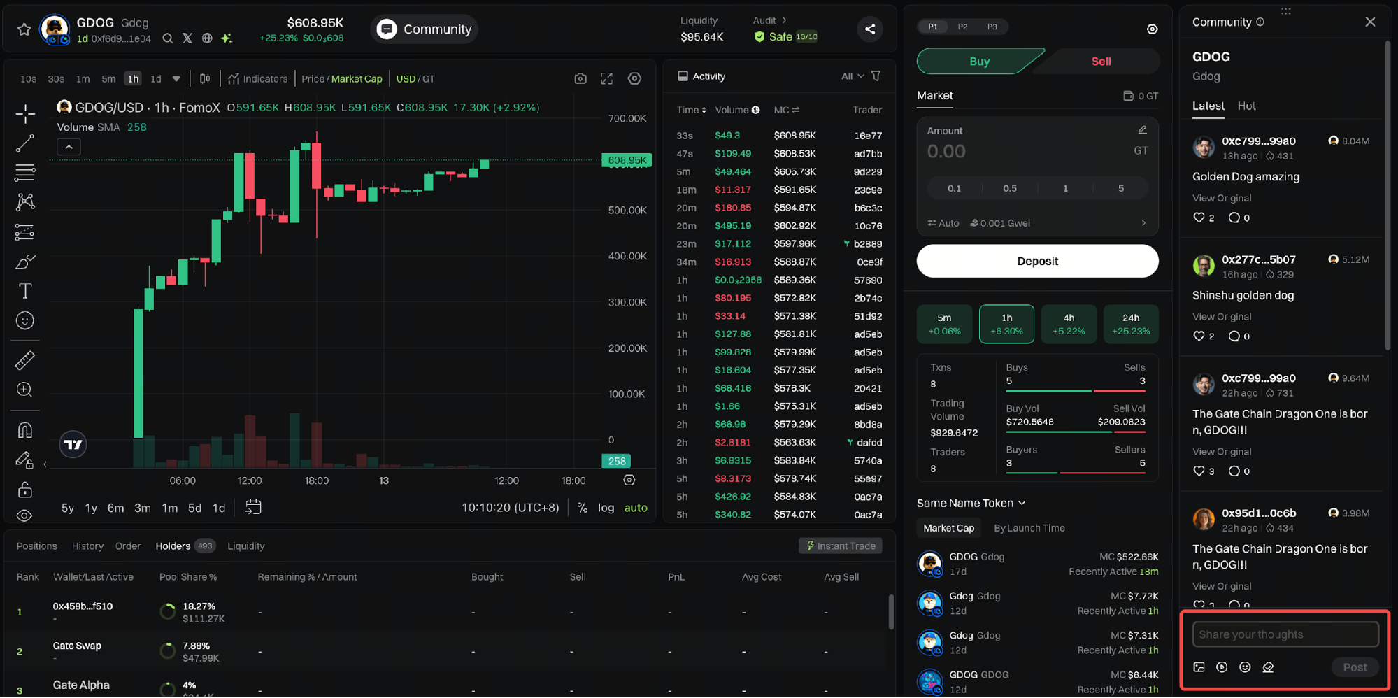 1. Gate Fun公式サイトで、作成済みまたはフォロー中トークンの詳細ページにある「コミュニティ」ボタンをクリックする。