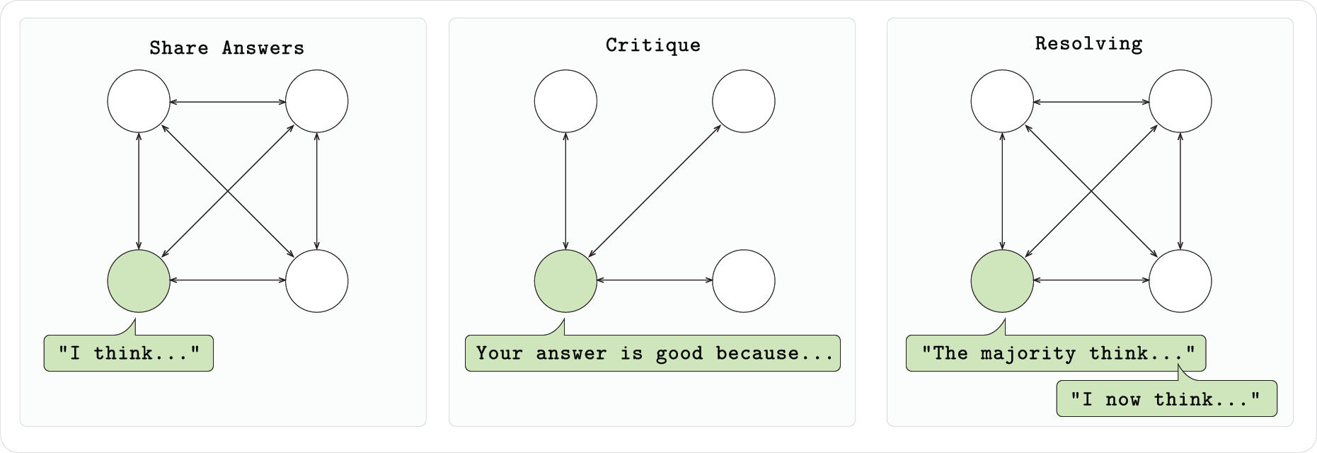 簡単に言えば、DeepSeek-R1などのモデルが推論トレーニングを行う際に、自己批評を通じて推論パフォーマンスを反復的に向上させることができ、RL Swarmはこのメカニズムを複数のモデルの集団に拡張し、「みんなで集まれば火が高くなる」効果を実現しました。