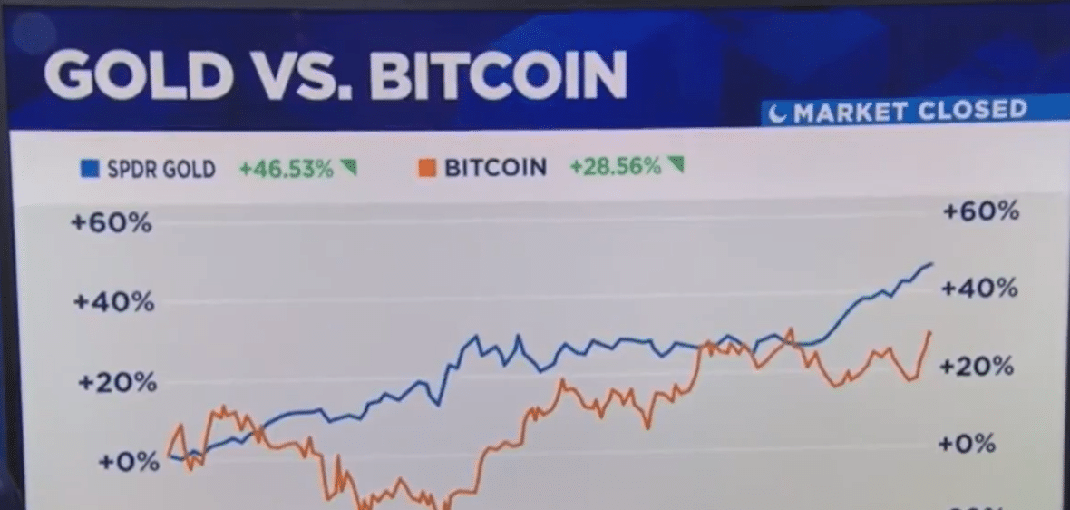 その間、ホストは過去1年間の金とビットコインのチャートも共有し、両者の相関パターンを示しました。アナリストはこれをさらに分析し、金がしばしばファーストムーバーであり、ビットコインがそのトレンドに追いついていることを強調しました。