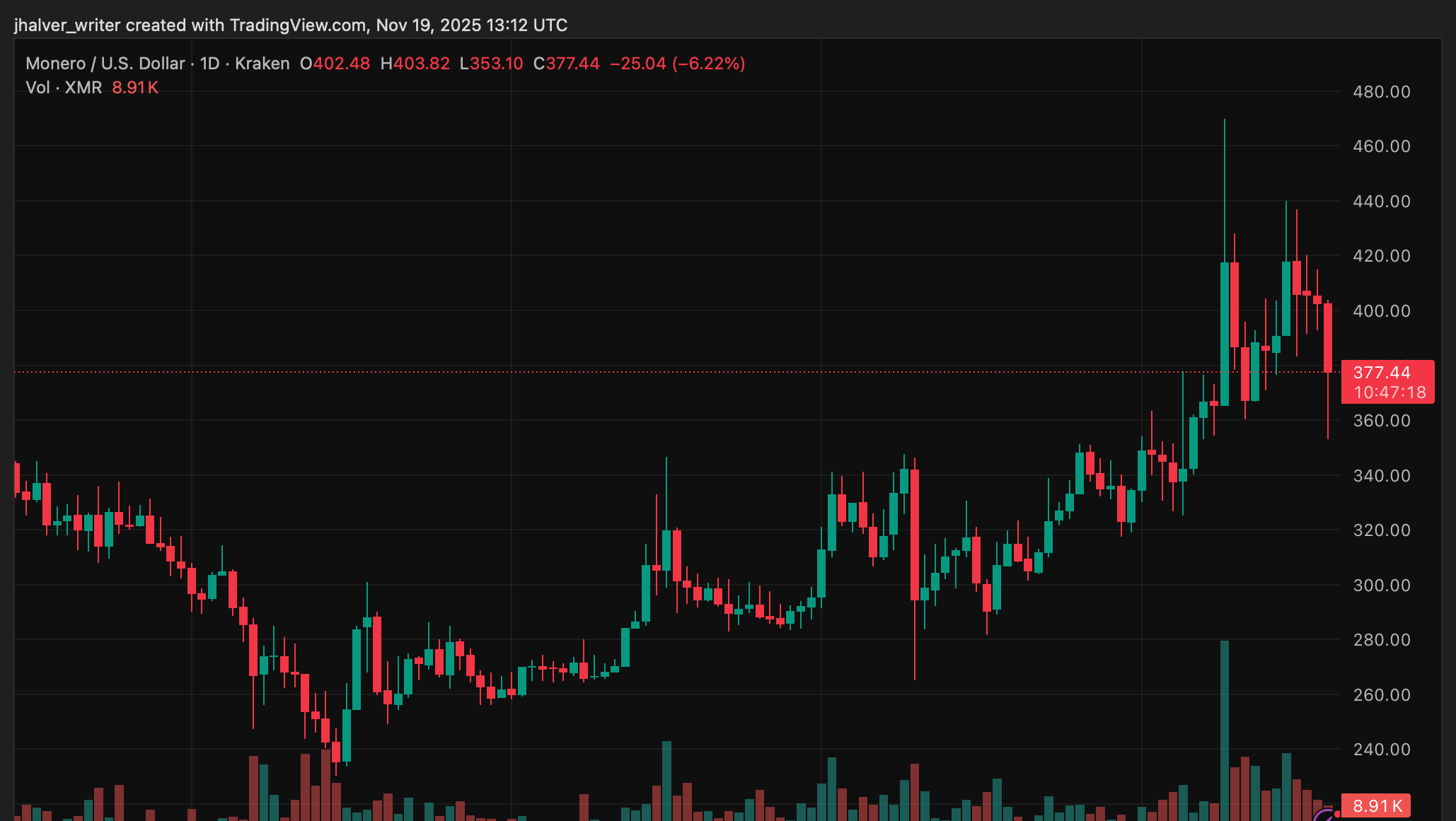 それでも、すべての指標が南を指しているわけではありません。アナリストは、XMRが$373を上回っている限り、$400–$410 の抵抗帯に向けて日中の反発の可能性が残っていると指摘しています。しかし、すでにその閾値を下回っているため、ブルは再びコントロールを取り戻すために困難な戦いに直面するかもしれません。