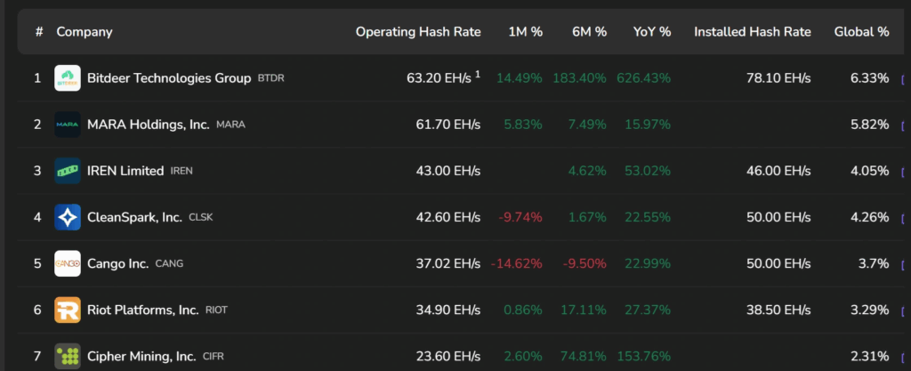 同社の自己運営ハッシュレートは、現在Marathon Digital(MARA)を上回り、自己運営ハッシュレートの面で最大の上場ビットコイン採掘業者となっています。
