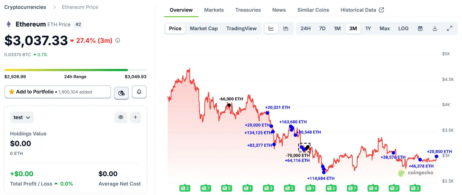 Trend Research acquired $35 million in Ether (ETH), pushing its holdings above 601,000 ETH worth around $1.83 billion, according to blockchain data platform Lookonchain.