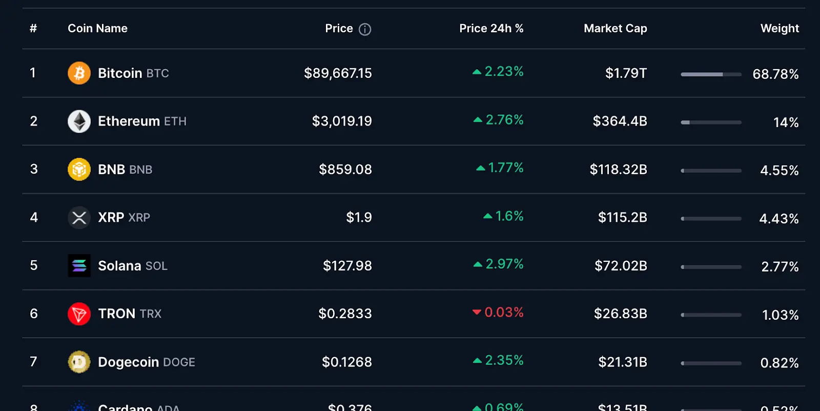 After briefly reclaiming the $90,000 level today, Bitcoin is now trading at $89,834, up 2.4% over the past day. With a 1.2% uptick over the past week, it has reduced its monthly loss to 1.1%.