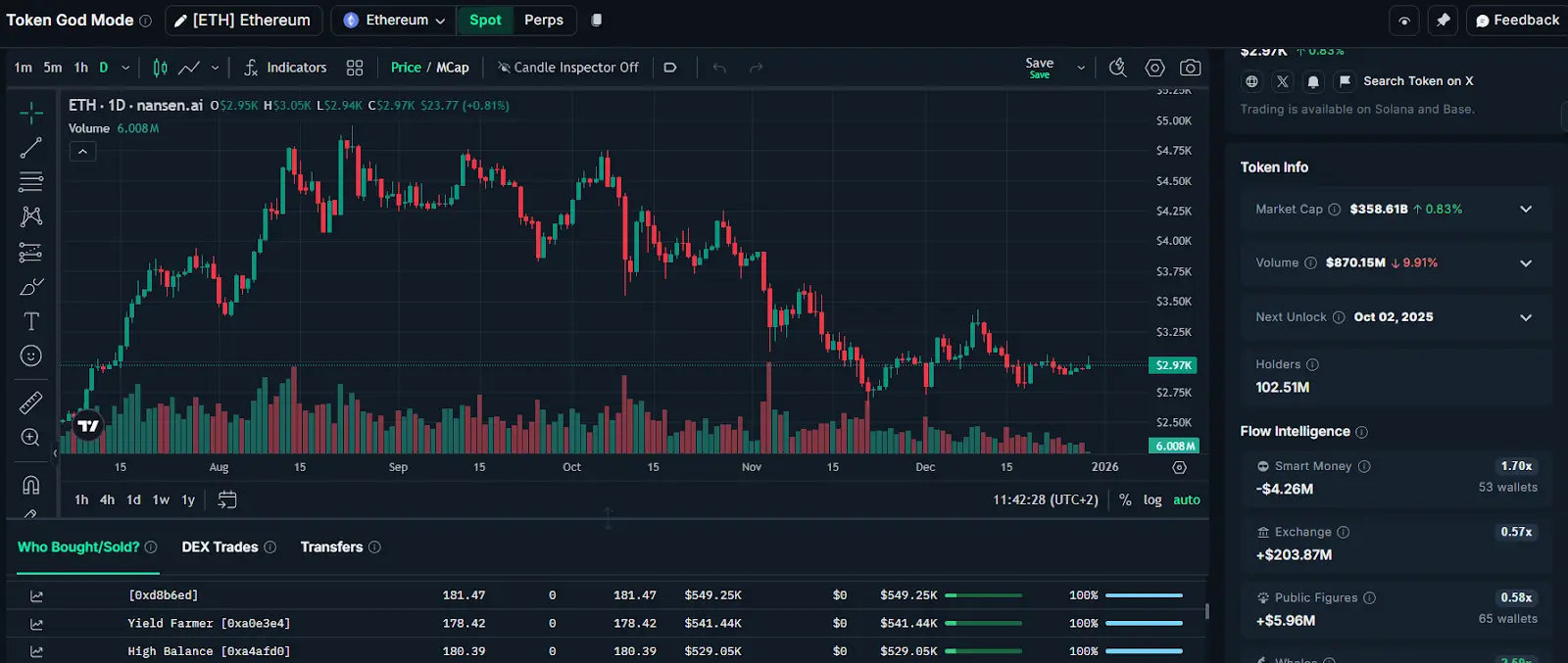 Smart money traders sold a cumulative $4.26 million worth of spot Ether tokens across 53 wallets during the past week, but whale wallets bought a cumulative $11.6 million during the same period.