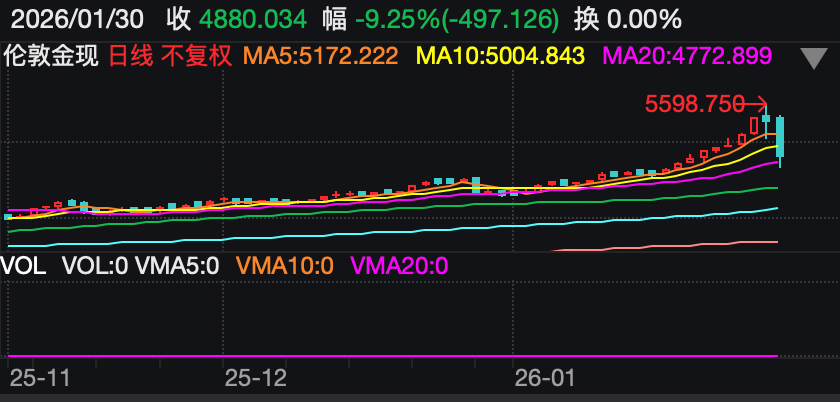 In addition to the “Jiewo Rui” incident, the sharp fluctuations in international gold and silver prices have also attracted market attention. In the early hours of January 31, Beijing time, precious metals such as gold and silver experienced a “flash crash.” Taking gold as an example, spot gold first broke through the $5,500 per ounce mark on January 29, but after approaching the $5,600 level, it declined. On January 30, spot gold accelerated its decline, falling below $4,900 per ounce.
