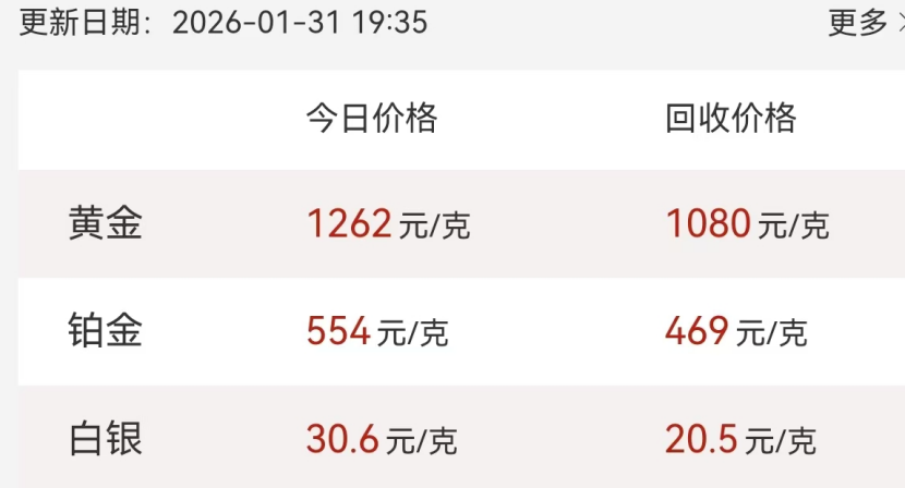 Meanwhile, in the Shuibei market in Shenzhen, the highest price for gold jewelry reached nearly 1,400 yuan per gram, but by the 31st, the quote had fallen to around 1,262 yuan.