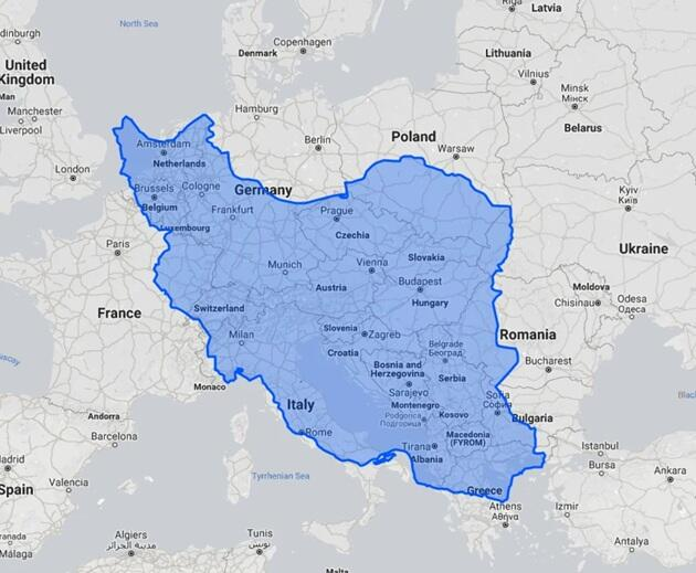 First, the sheer size is daunting. Iran’s population exceeds 90 million, more than twice that of its neighbor Iraq. Geographically, Iran covers about 1.65 million square kilometers, roughly the size of Alaska. If overlaid on a U.S. map, Iran would span nearly one-third of the continental United States; compared to Texas, Iran also appears enormous.