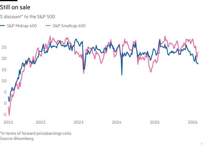 Small and mid-cap US stocks may be at a smaller discount to big US stocks than the global indices in absolute terms — 20 per cent or so versus 30 per cent or so. But in historical terms, as the chart above shows, they are cheaper. Small and mid caps traded at part or even a premium to big caps before tech shares went bananas post-Covid. That is never true of the global indices. And the smalls and mids have the AI-resilient characteristics; the mid-cap index is a quarter industrials. Unhedged still likes this stuff.