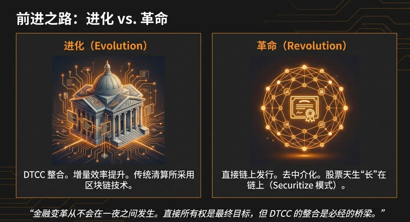 “Financial transformation is not instantaneous. Direct ownership is the ultimate goal, but integration and optimization of DTCC are necessary bridges to the future.”