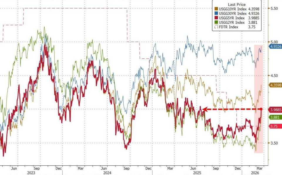 The 10-year U.S. Treasury yield surged 13.4 basis points in a single day, with a total increase of over 10 basis points this week; the 5-year yield broke above 4% for the first time since July, and the yield curve flattened sharply.