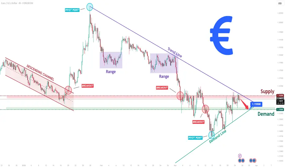 EURUSD Short: Descending Trend Holds - Breakdown 1.1550 in Focus