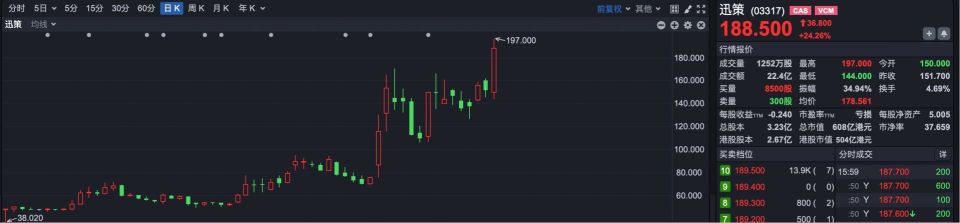 In terms of focus companies, “Token” first stock Xunce (HK03317) surged nearly 30% at one point during the trading session, ultimately closing up over 24%, becoming the biggest focus of the market today. At today’s close, Xunce reached a new high since its listing, with a total market value exceeding 60 billion Hong Kong dollars, and the stock price increased by 290% compared to the issue price.