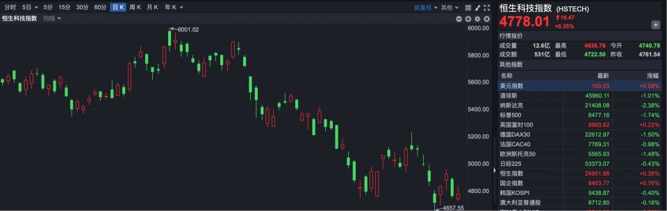 The Hang Seng Tech Index closed at 4,778.01 points, up 16.47 points, a rise of 0.35%.