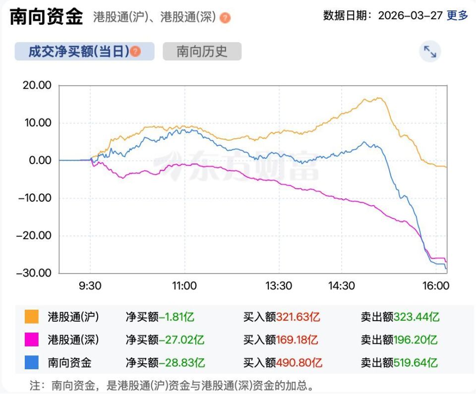 In terms of capital, southbound funds saw a slight outflow today. By the close, southbound funds net sold over 2.8 billion Hong Kong dollars of Hong Kong stocks.