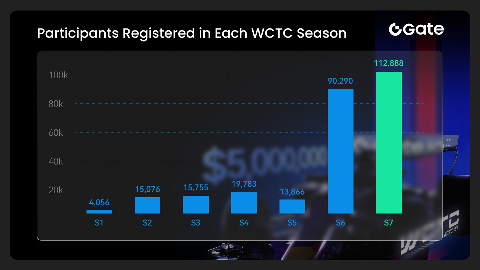 Desde o inaugural WCTC, a escala da competição cresceu constantemente. O WCTC S7 viu um número recorde de inscritos, destacando o amplo apelo do mercado de negociação de criptomoedas e o entusiasmo contínuo dos usuários.