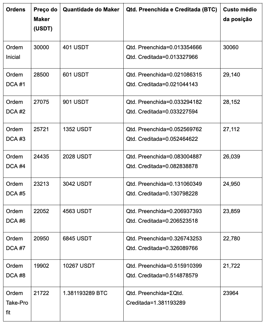 Quantidade vendida no Take Profit: 23.964 * 1,3811932 = 33.099 USDT