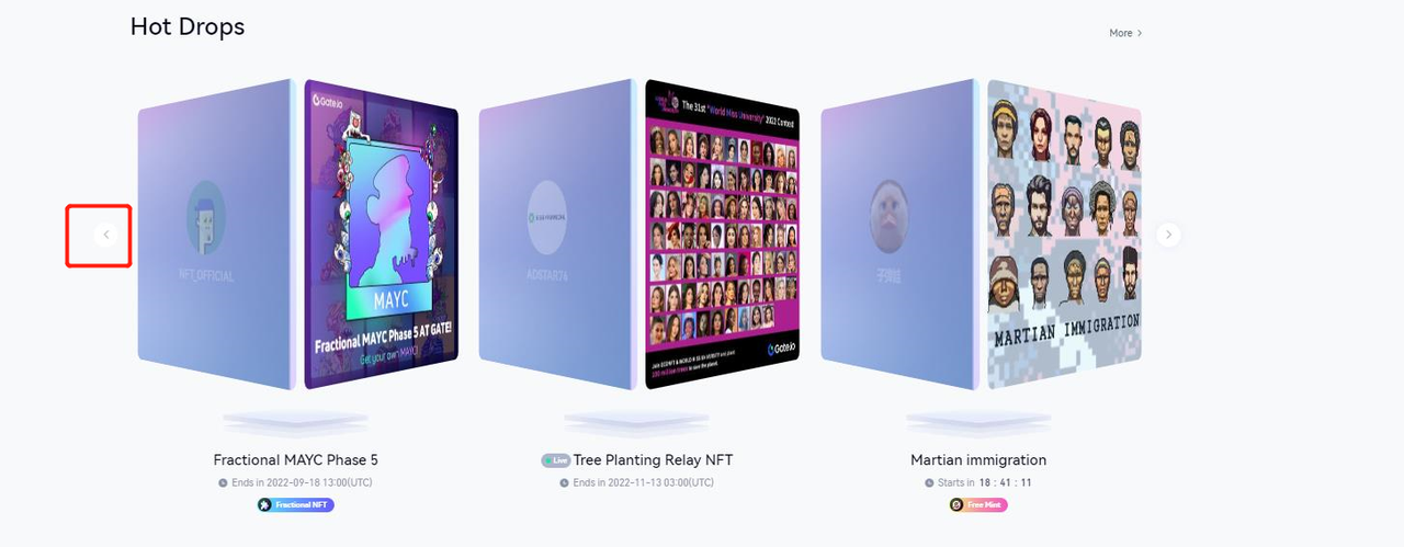 Etapa 1: Vá para a página inicial da NFT e clique em “Drops (lançamentos)” para entrar na página Drops ou ver diretamente a seção Hot Drops (lançamentos quentes).