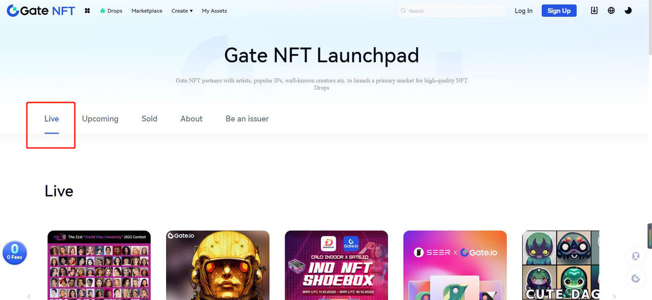 As assinaturas ao vivo também são listadas no Gate NFT Launchpad. Encontre o que você está interessado, clique nele e você pode participar da assinatura.
