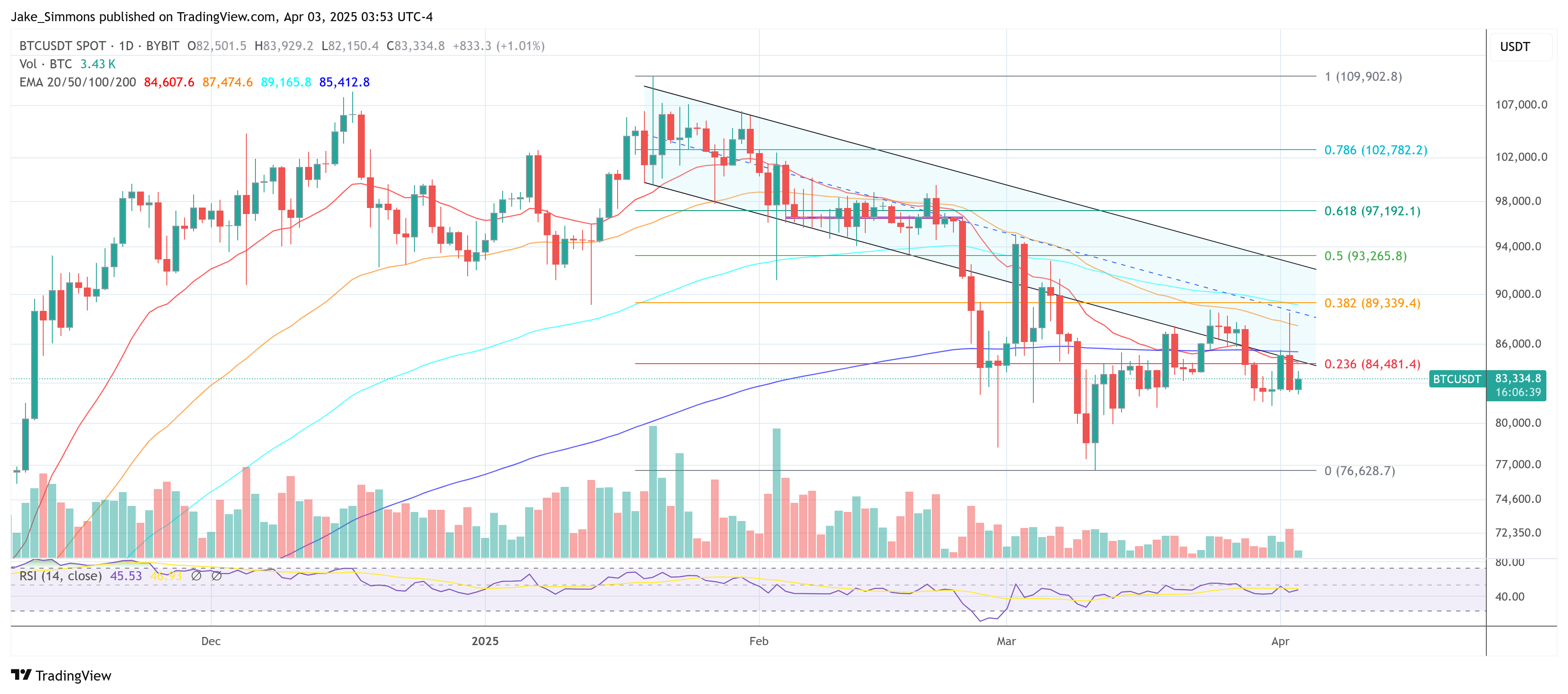 No momento da imprensa, o BTC foi negociado a $83,334.