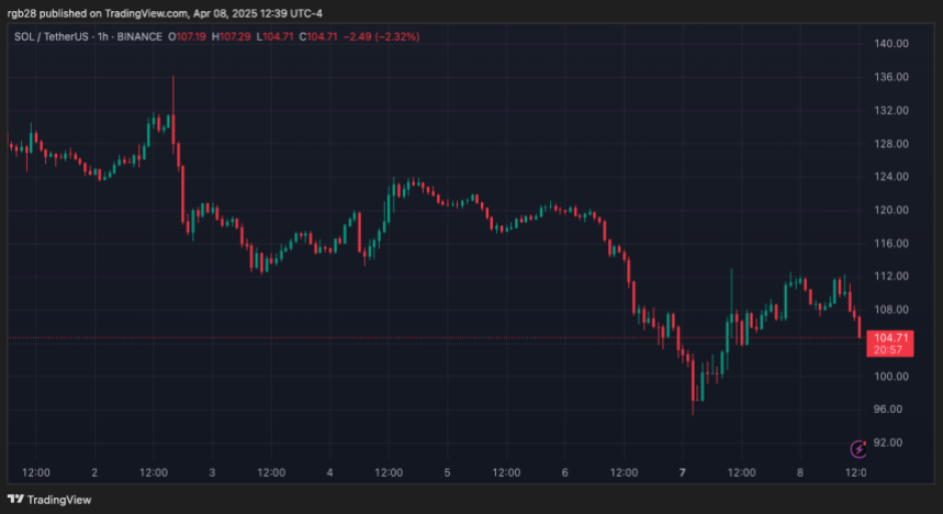 No momento em que este artigo foi escrito, Solana é negociado a US$ 105, uma queda de 1% no período diário.