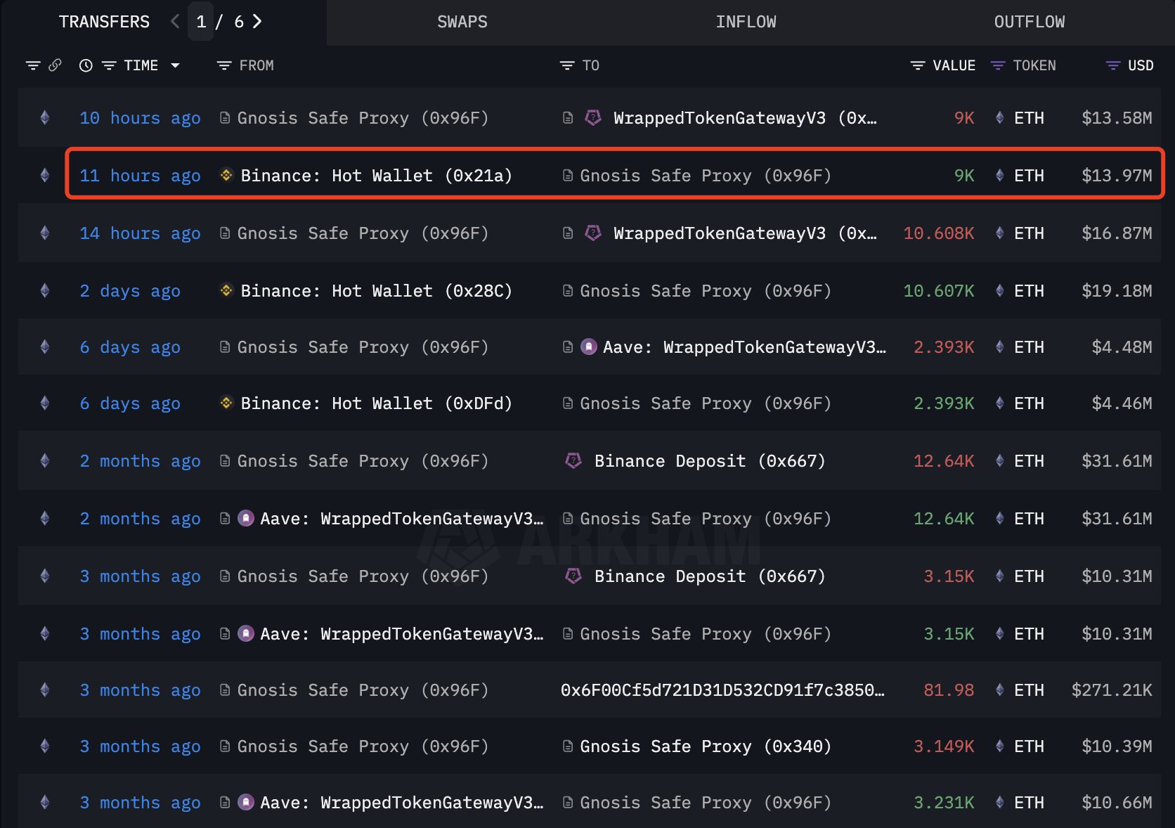 Второй кит, идентифицированный по адресу кошелька 0x96F4, купил в общей сложности 9000 ETH 7 апреля. Эти монеты Ethereum обошлись киту в общую сумму 13,97 миллиона долларов. Кроме того, Lookonchain подтвердил, что этот кит накопил 22 000 ETH на сумму 37,6 миллиона долларов за последние 6 дней.