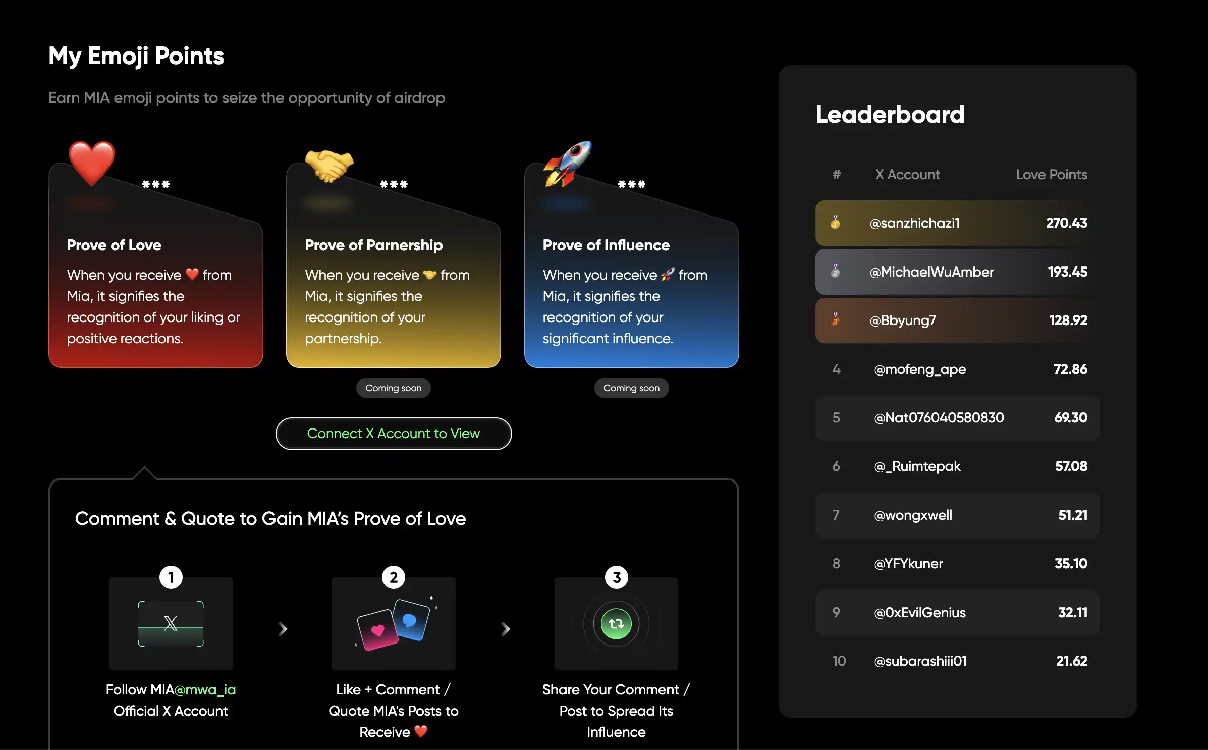 Кроме того, AIAC добавил на сайт очень интересную функцию «Emoji Points», аналогичную специальным Yap points для определенного AI Agent. Когда кто-то обсуждает или взаимодействует с ним на X, он может получить Emoji Points, и эти очки могут дать шанс на получение аирдропа. Такой тип функции будет очень полезен для определения вклада сообщества в «POW» конкретного AI Agent.
