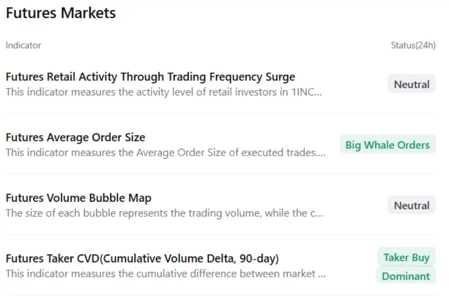 Цена 1INCH (1INCH) в настоящее время стабильно держится около 0,187 USD на момент написания статьи в четверг, после того как на начале недели столкнулась с сильным сопротивлением. Данные в блокчейне и производные показывают, что рынок постепенно улучшается, с значительным увеличением активности китов, преобладание покупателей становится все более заметным, а положительная ставка финансирования намекает на возможность отскока. Технические индикаторы также поддерживают восходящий тренд, так как покупатели нацеливаются на следующую цель около уровня 0,234 USD.