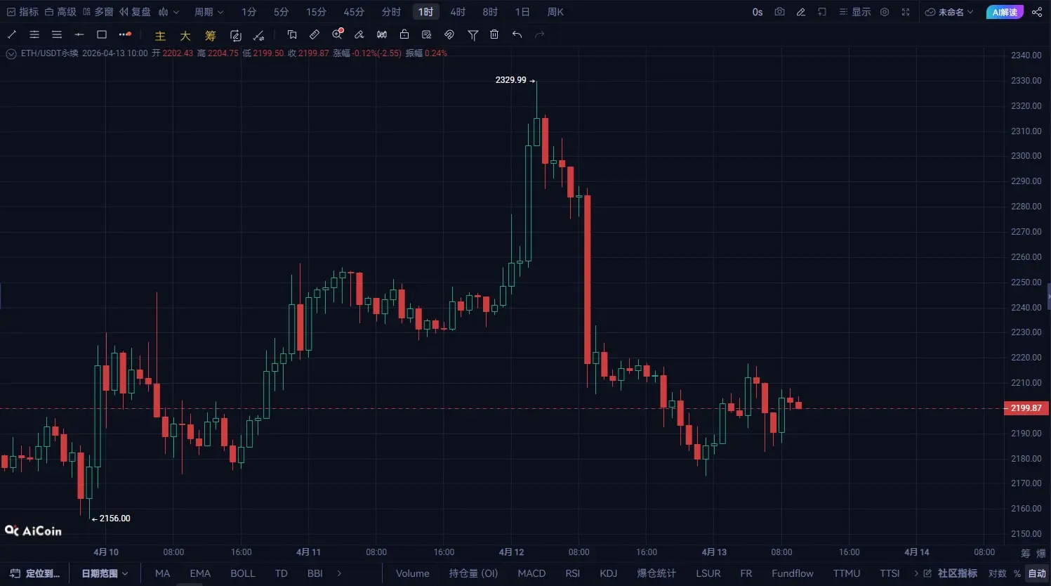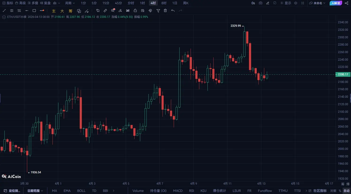 ETH на высоком уровне «отрубной меч» уже опустился! 2200 — линия жизни и смерти, скоро будет сделан выбор направления!