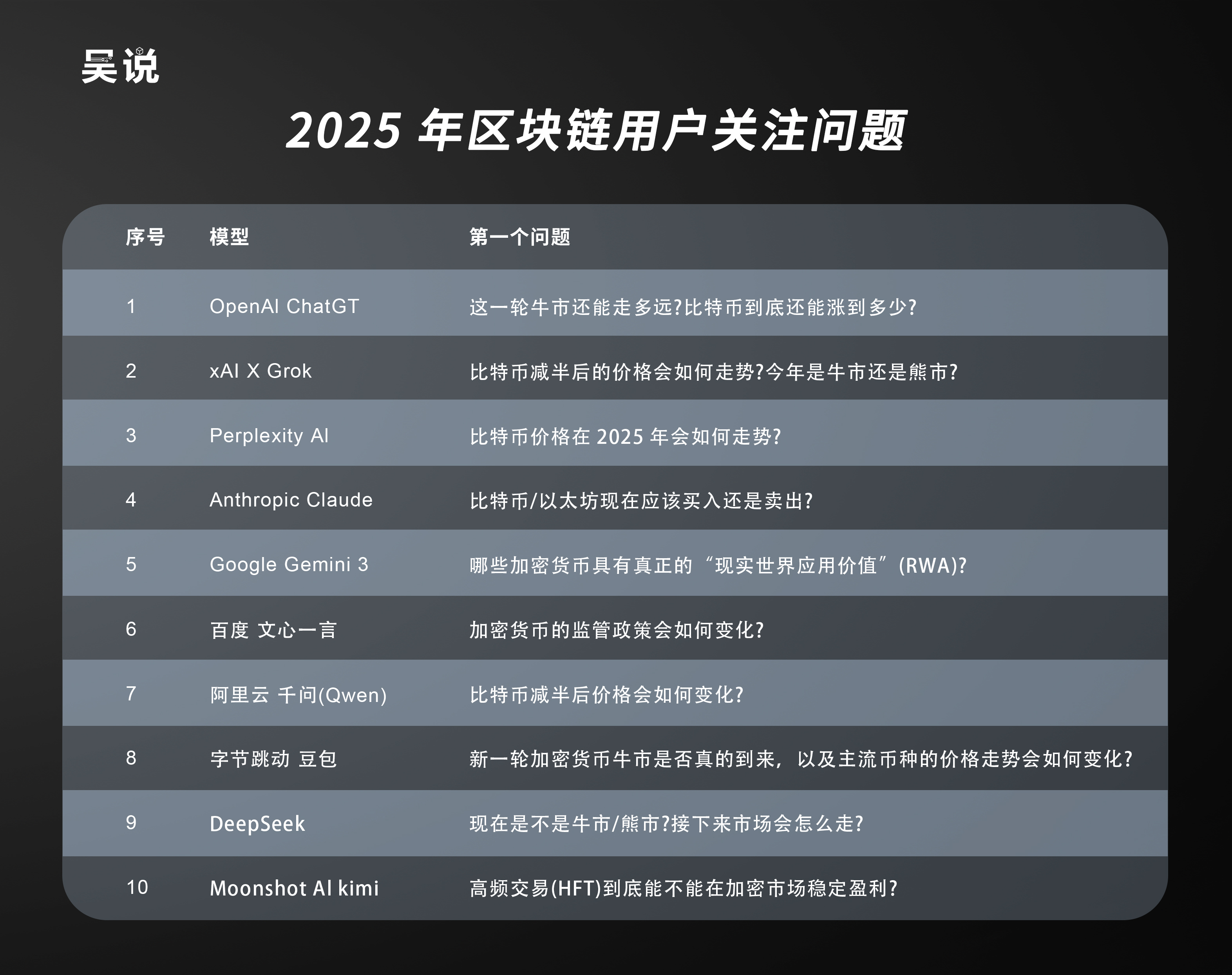 What are crypto users most concerned about in 2025? We conducted a user survey through AI large models by asking the same question to different models: “What are the top three most asked questions about cryptocurrency in 2025?”