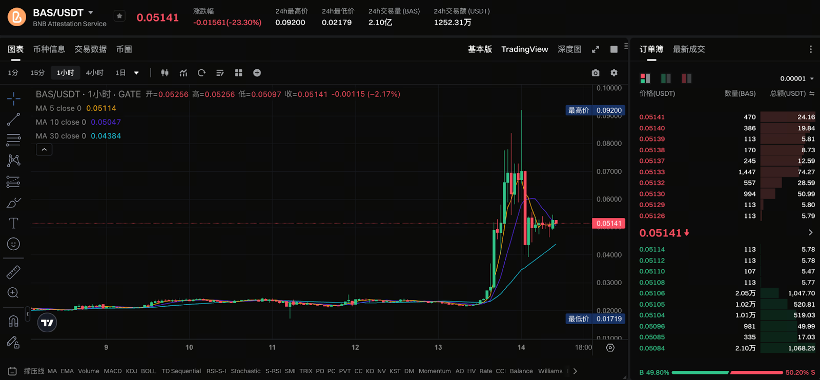 • Обмін токенів: Відкривайте ордери на торгових парах BAS/USDT чи BAS/WBNB.