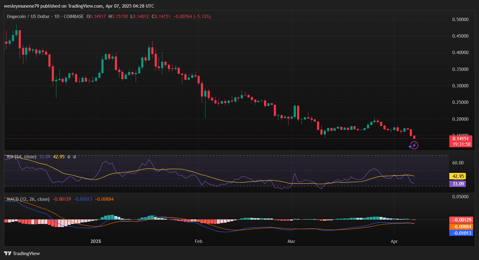 Відстежуючи ринкову дію, дані TradingView вказують на те, що на момент написання статті ціна DOGE впала більш ніж на 18% за останні 24 години, встановившись на рівні 0,1336 долара, який продовжує знижуватися. У поєднанні з технічними індикаторами DOGE тепер сигналізує про можливу точку перегину, хоча чіткого бичачого підтвердження не видно.