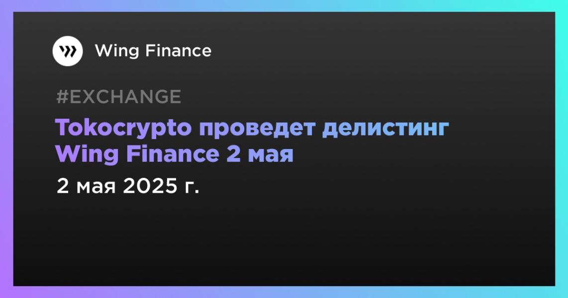 Tokocrypto проведе делістинг Wing Finance (WING) 2 травня о 03:00 за UTC.