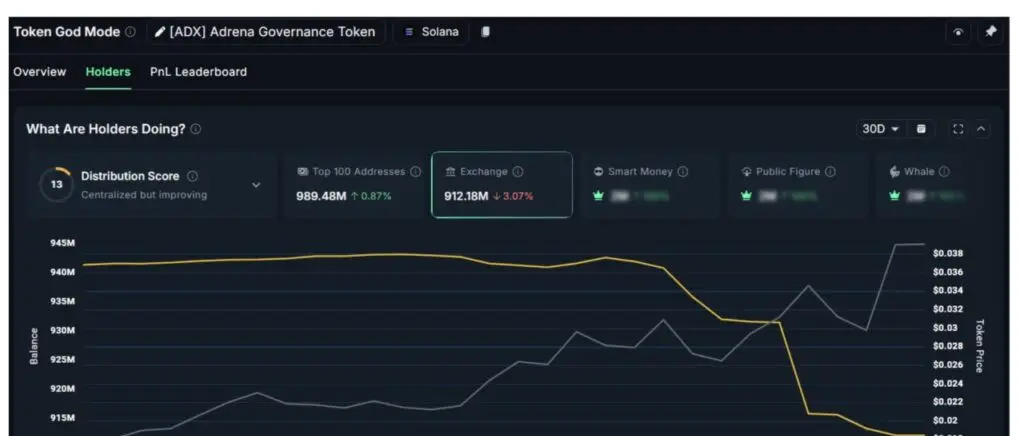 Дані показали, що резерви біржі зменшилися більш ніж на 3% у останньому тижні вересня, тоді як ціна ADX зросла з $0.028 до $0.038. У той же час, основні гаманці китів збільшили свої активи на 0.87%.