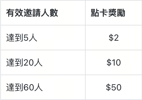 活動期間最多可邀請50位新用戶。