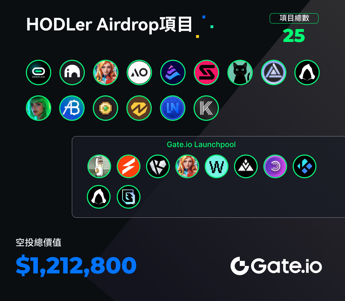 本週期Gate上線了30個新項目,10個Gate Launchpool項目和15個HODLer Airdrop免費空投,HODLer Airdrop總空投價值為121.28萬美元。