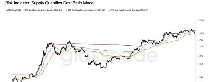資料來源:CryptoNewsNet 原始標題:比特幣跌破關鍵熊市線,Glassnode分析顯示 原始連結: 根據鏈上分析公司Glassnode的分析,比特幣已跌破一個關鍵的熊市閾值,具體來說是0.75成本基礎分位數,該公司提供對加密貨幣市場的數據驅動見解。