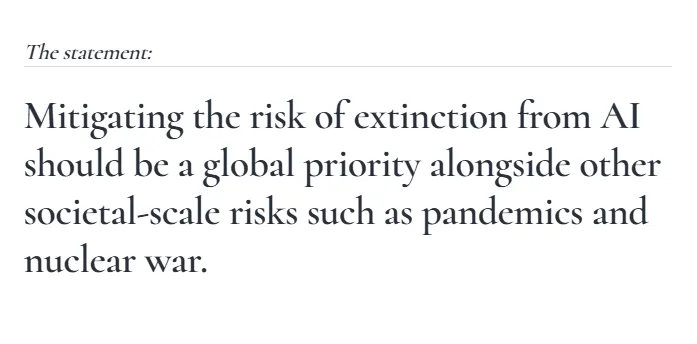 而早在2023年,幾乎所有這些公司都簽署了一份由AI安全中心(Center for AI Safety)發出的聲明,呼籲放慢技術發展,聲稱人工智慧與疫情和核戰一樣,構成「存在性風險」。