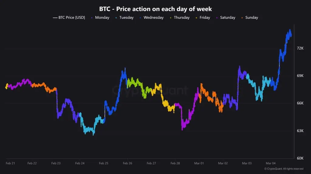 2026 年 3 月 5 日,比特幣市場迎來顯著異動。根據 Gate 行情數據顯示,比特幣 (BTC) 價格在過去 24 小時內上漲 +7.61%,最高觸及 74,056.5 美元,截止2026年3月5日價格回落至 72,780.1 美元。此次比特幣大漲的背後動力究竟是什麼?鏈上數據分析平台 CryptoQuant 的最新分析指出,本輪上漲主要由機構需求驅動,但衍生品市場槓桿的快速抬升也為後續波動埋下伏筆。本文將從鏈上數據、市場情緒與槓桿結構等多維度展開深度分析。
