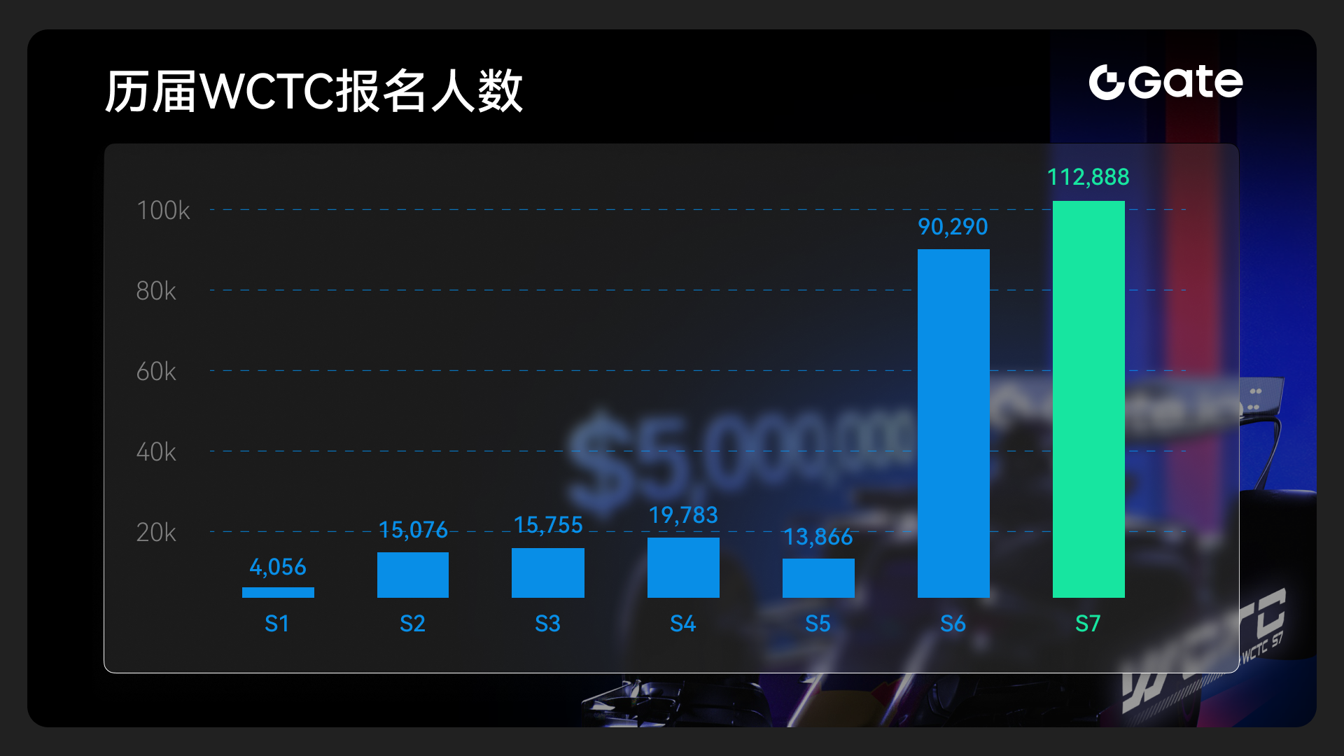 自首届WCTC以来,赛事规模逐年扩大,WCTC S7报名人数更是达到前所未有的高度。这一数据增长趋势充分体现了加密货币交易市场的广泛吸引力和用户的持续参与。以下为历届赛事的报名数据对比: