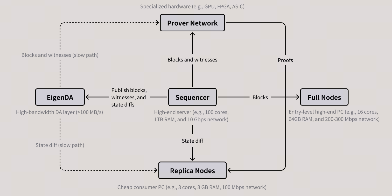 MegaETH 从底层设计上全面优化以太坊执行环境,以追求极致性能。它采用完全兼容 EVM 的执行环境,开发团队对标准以太坊结构进行了重大改革。具体而言,MegaETH 识别并解决了传统EVM中的瓶颈问题:测试显示,现有 Rust 版 EVM 客户端(reth)单线程大约只能处理 1.4 万 TPS,而单纯并行化最多只提升近 2 倍性能。为此,MegaETH 引入了两大关键优化:首先,采用改进的数据结构——用一种内存高效的 Verkle Trie 替代 Merkle Patricia Trie,使状态访问与证明生成显著加速,并通过减少区块内重复读写进一步优化执行效率,并通过合并对同一区块内状态的读写操作来减少不必要的计算。其次,项目团队展示了实验性使用约 100GB RAM 的高规格 Sequencer,使绝大部分链上状态可常驻内存以降低访问延迟,从而完全消除固态硬盘访问带来的延迟。这种配置让状态访问速度提升约 1000 倍,并通过专门的块传播协议快速同步全网,降低了普通节点的硬件要求。
